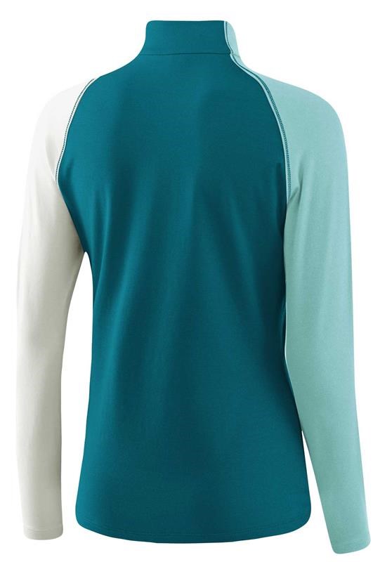 Halfzip mit Stehkragen, elastisch, schnell trocknend, perfekter Schweißtransport, Colorblock, Kontrastnähte, Langarm im Raglanschnitt, offene Arm- und Bundabschlüsse.